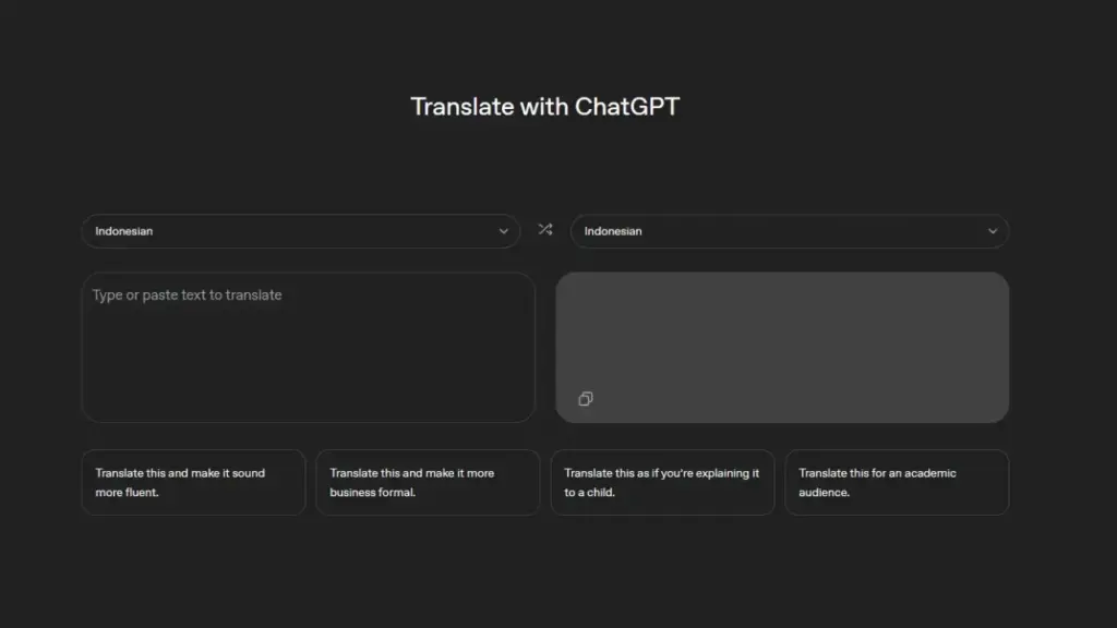 Keunggulan utama yang menjadi pembeda terletak pada fleksibilitas pengguna dalam mengolah teks setelah diterjemahkan. Pada bagian bawah antarmuka, tersedia berbagai opsi prompt instan yang memungkinkan pengguna melakukan penyuntingan tingkat lanjut secara otomatis.