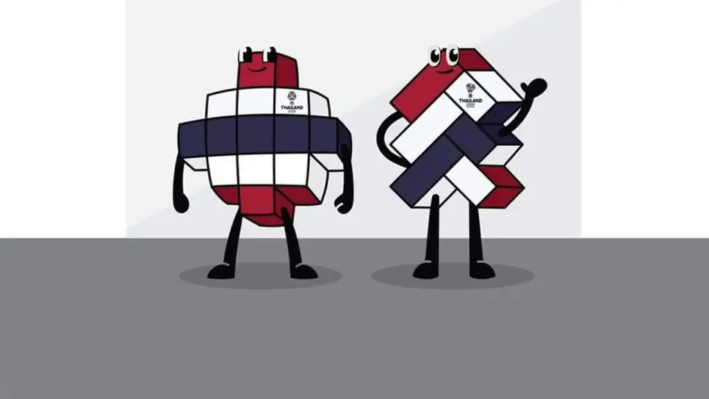 Maskot “The San” versi terbaru hadir dengan desain geometris yang terinspirasi dari pola tenun khas Thailand, memadukan identitas tradisional dengan keindahan modern. Ekspresi wajahnya yang ceria melambangkan kegembiraan, perayaan, dan semangat persatuan dalam olahraga.