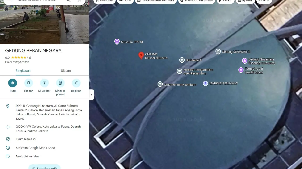 Nama Gedung Kompleks Parlemen Republik Indonesia (DPR/MPR RI) di aplikasi peta digital Google Maps diubah oleh pihak tak dikenal menjadi “Gedung Beban Negara”. Perubahan nama yang diduga sebagai bentuk kritik sosial ini menjadi viral dan memicu kehebohan di kalangan warganet pada Sabtu (30/8/2025) siang.